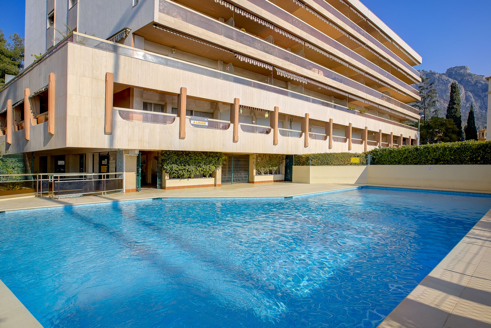 Frais de fonctionnement mensuels : 269 € (entretien espaces communs, gardien, piscine, eau froide et espaces verts)